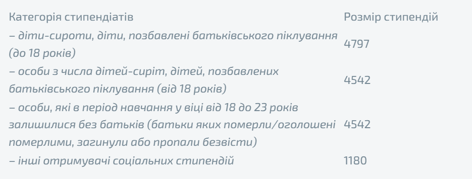 Розмір соціальних стипендій